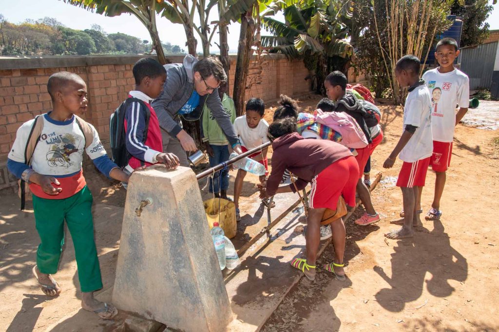 Dans la plupart des cas, les habitants des villages et des villes ne disposent pas d’eau courante et n’ont pas accès à l’eau potable. Lors de la construction d’une école, une adduction en eau est réalisée qui profite aux écoliers mais aussi à l’ensemble du quartier ou du village, avec un impact positif sur la santé.